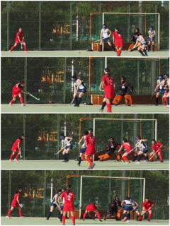 京都大学ボールで試合が開始された。第1Q大阪体育大学の反則により京都大学が1回目のペナルティコーナーを獲得。しかし、京都大学のタッチシュートが決まらず、得点にはならない。第1Q大阪体育大学の反則により京都大学が2.3回目のペナルティコーナーを獲得。キーパーの好セーブもあったが11分に#10村田が得点する。第1Qは京都大学の1得点に終わる。第2Q、大阪体育大学が初めてペナルティコーナーを獲得。しかしながら、京都大学のクリアでチャンスを逃す。京都大学か第2Qに4回目のペナルティコーナーを獲得するも点には繋がらず。大阪体育大学のボールで後半がスタートが開始された。第3Q、36分京都大学がPCを獲得するも得点にはならない。43分、大阪体育大学がPCを獲得も得点にはならない。その後両チーム攻め合いが続くも大阪体育大学は53分PCを獲得。しかし、京都大学のキーパー#20大西の好セーブにあう。そのまま試合は終了した