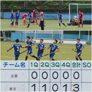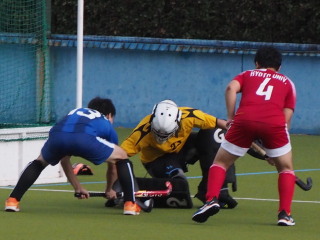開始3分で京都大学がPCを取るが、点数には繋がらない。お互いに攻めるチャンスがあるがなかなか点数にはつながらなかった。開始12分で東京大学がPCを取り、9番の松田が1点目を決める。1Qは東京大学が先制点を取る。2Qは開始25分で東京大学で2番石川がPCで2点目を決める。京都大学が開始25分で7番中村にイエローカードが出された。2-0で東京大学がリードし、試合は折り返した。3Qでは両校とも健闘するが、点数には繋がらず、4Qに入る。4Qでは東京大学が攻めの姿勢を見せるが、なかなか点数には繋がらない。対して京都大学も守りの姿勢を見せる。開始52分で21番田倉がFGを決める。開始60分で23番坪井がグリーンカードが出された。最終的に3-0で東京大学の勝利で試合は終了した。 https://myhockey.jp/match/2021/09/04/53388/